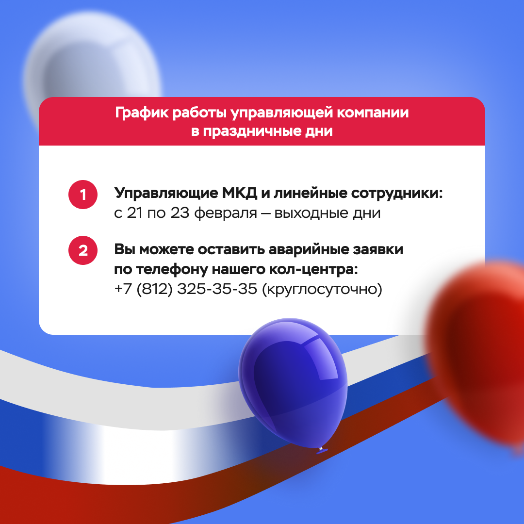 23 февраля офисы управляющей компании будут закрыты.